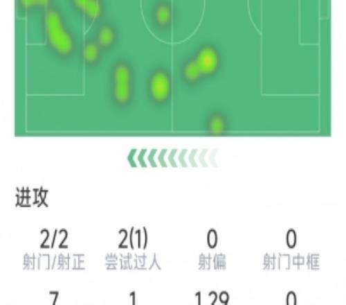 热苏斯本场数据:梅开二度,2射2正,2次关键传球,10对抗4成功