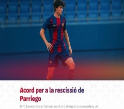 巴萨官方:和20岁中场帕列戈解约,球员本赛季才被提拔至B队